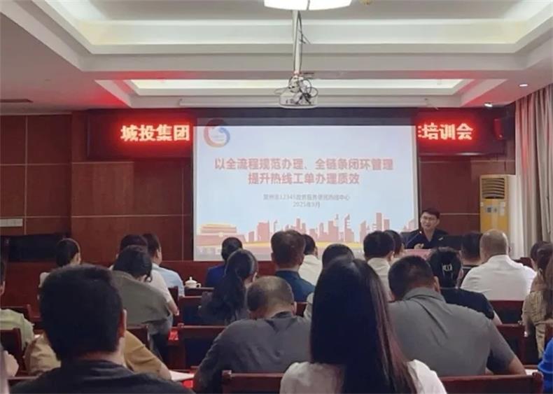 為切實提升12345熱線工單辦理質(zhì)效,更好回應(yīng)群眾訴求,9 月 24 日,城投集團(tuán)組織召開 12345 熱線工單辦理工作專題培訓(xùn)會。集團(tuán)黨委副書記、職工董事、工會主席陸劍如主持會議,市 12345 熱線中心干部康作偉、話務(wù)班班長高時受邀授課并開展現(xiàn)場答疑,集團(tuán)各子公司分管領(lǐng)導(dǎo)、部門負(fù)責(zé)人及工單承辦人員共計30 余人參加培訓(xùn)。